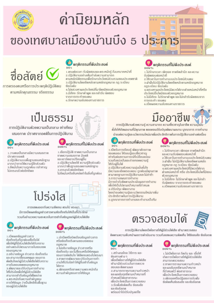 ค่านิยมหลักของเทศบาลเมืองบ้านบึง 5 ประการ