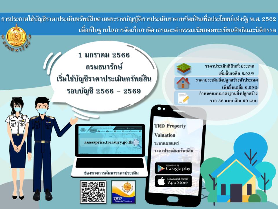 การประกาศใช้บัญชีราคาประเมินทรัพย์สินตามพระราชบัญญัติการประเมินราคาทรัพย์สินเพื่อประโยชน์แห่งรัฐ พ.ศ.2562 เพื่อเป็นฐานในการจัดเก็บภาษีอากรและค่าธรรมเนียมจดทะเบียนสิทธิและนิติกรรม
