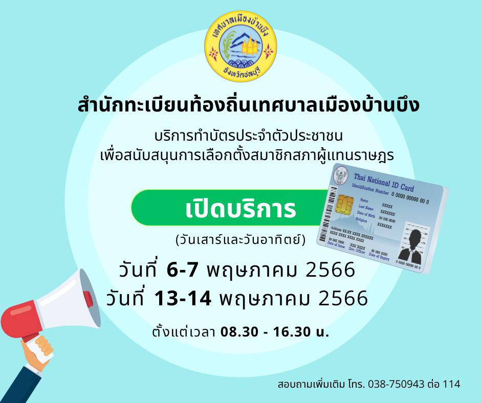 บริการทำบัตรประจำตัวประชาชน เพื่อสนับสนุนการเลือกตั้งสมาชิกสภาผู้แทนราษฎร