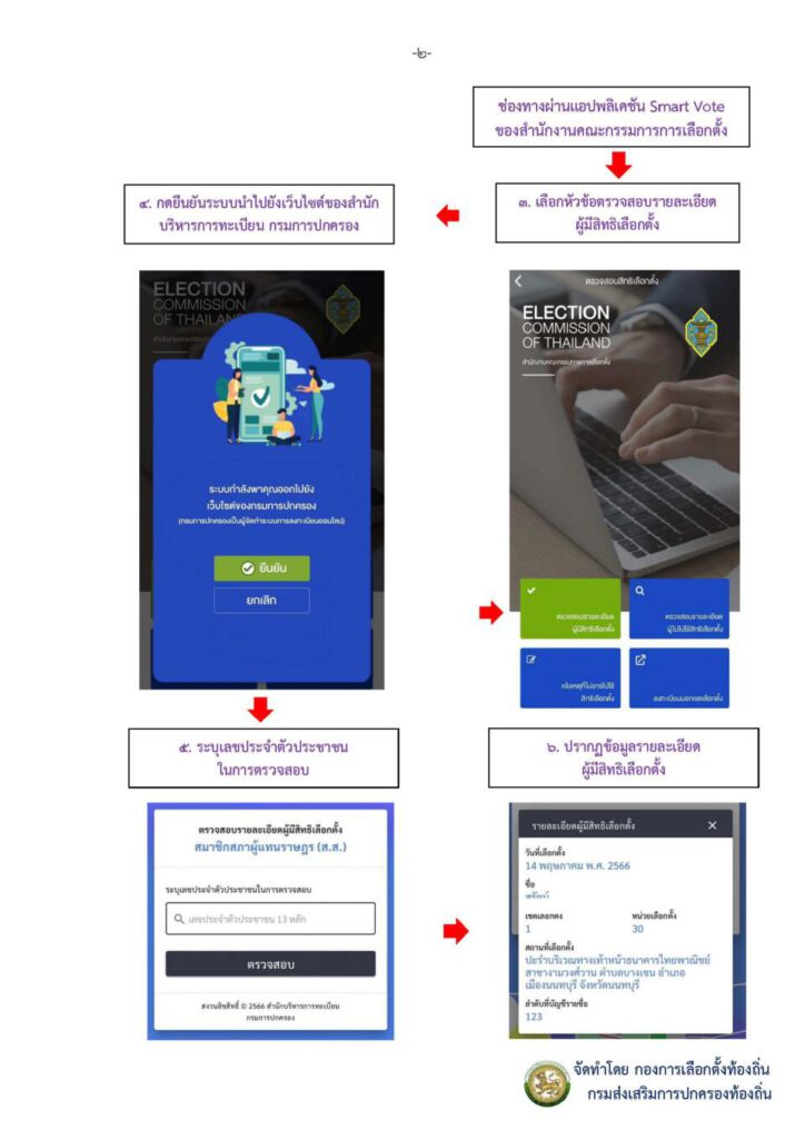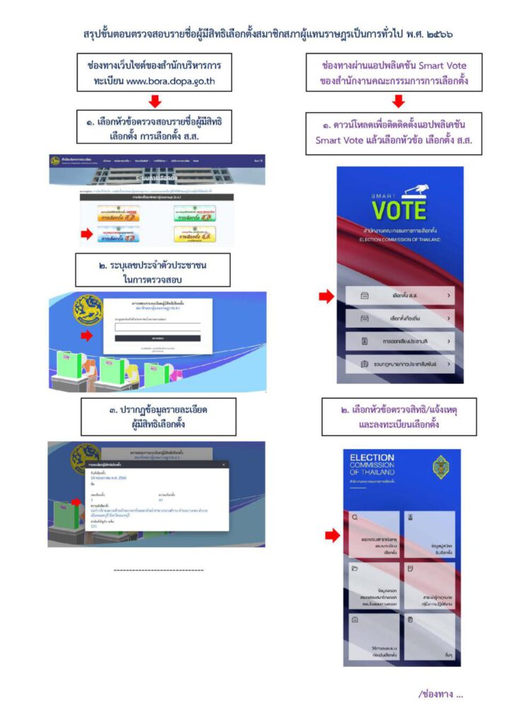 สรุปขั้นตอนตรวจสอบรายชื่อผู้มีสิทธิเลือกตั้งสมาชิกสภาผู้แทนราษฎรเป็นการทั่วไป พ.ศ.2566