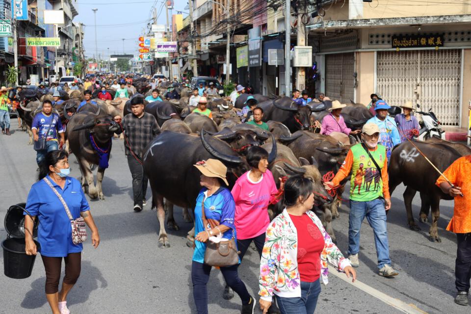 งานประเพณีวิ่งควายเทศบาลเมืองบ้านบึง นายสุรสิตย์ กังวลกิจ นายกเทศมนตรีเมืองบ้านบึง เป็นประธานในพิธีเปิด งานประเพณีวิ่งควายเทศบาลเมืองบ้านบึง พร้อมด้วยคณะผู้บริหาร สมาชิกสภาเทศบาลฯ และหัวหน้าส่วนราชการ วันอาทิตย์ที่ 5 พฤศจิกายน 2566 ณ บริเวณตลาดโต้รุ่งเทศบาลเมืองบ้านบึง