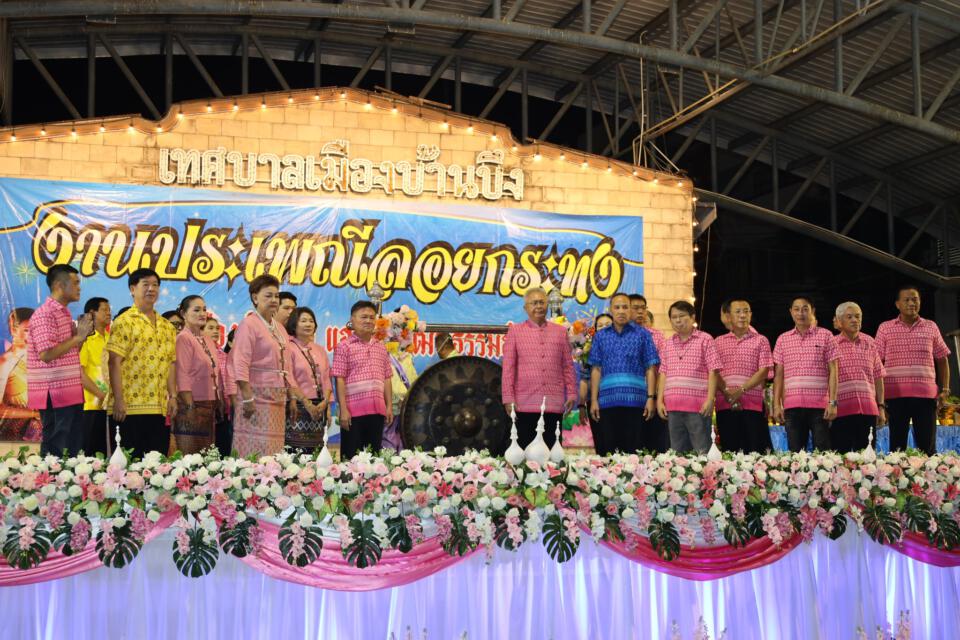 นายสุรสิตย์ กังวลกิจ นายกเทศมนตรีเมืองบ้านบึง เป็นประธานในพิธีเปิดประเพณีลอยกระทง พร้อมด้วยคณะผู้บริหาร สมาชิกสภาเทศบาลฯ และหัวหน้าส่วนราชการ โดยมีนายวันชัย จึงจรัสทรัพย์ ประธานสภาวัฒนธรรมอำเภอบ้านบึง ผู้กล่าวรายงานวัตถุประสงค์ของการจัดงาน