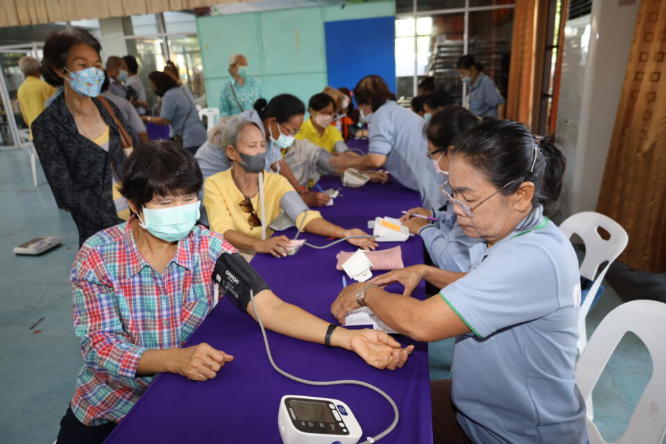 1.การให้บริการตรวจสุขภาพเบื้องต้นให้แก่ผู้สูงอายุที่มาร่วมงานโดยอาสาสมัครสาธารณสุขมูลฐานประจำหมู่บ้าน (อสม.)