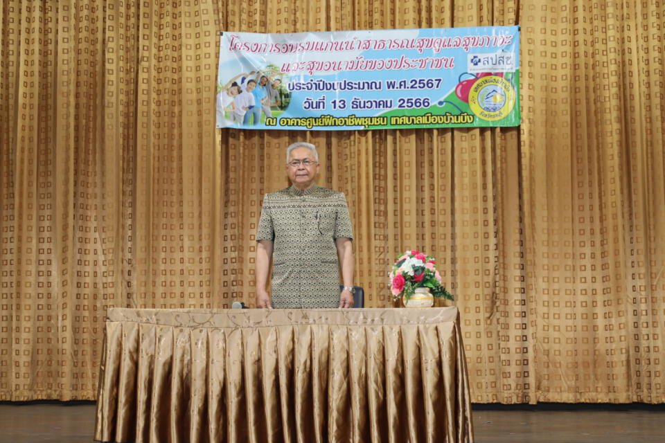 นายสุรสิตย์ กังวลกิจ นายกเทศมนตรีเมืองบ้านบึง เป็นประธานในพิธีเปิด “โครงการอบรมแกนนำสาธารณสุขดูแลสุขภาวะและสุขอนามัยของประชาชน” พร้อมด้วยคณะผู้บริหาร สมาชิกสภาเทศบาลฯ และหัวหน้าส่วนราชการ โดยมีประชาชนให้ความสนใจเข้าร่วมโครงการดังกล่าวเป็นจำนวนมาก ณ ศูนย์ฝึกอาชีพชุมชนเทศบาลเมืองบ้านบึง