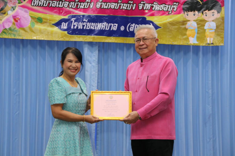 นายสุรสิตย์ กังวลกิจ นายกเทศมนตรีเมืองบ้านบึง เป็นประธานในพิธีเปิด โครงการจัดงานวันครู พร้อมด้วยคณะผู้บริหาร สมาชิกสภาเทศบาลฯ และหัวหน้าส่วนราชการ