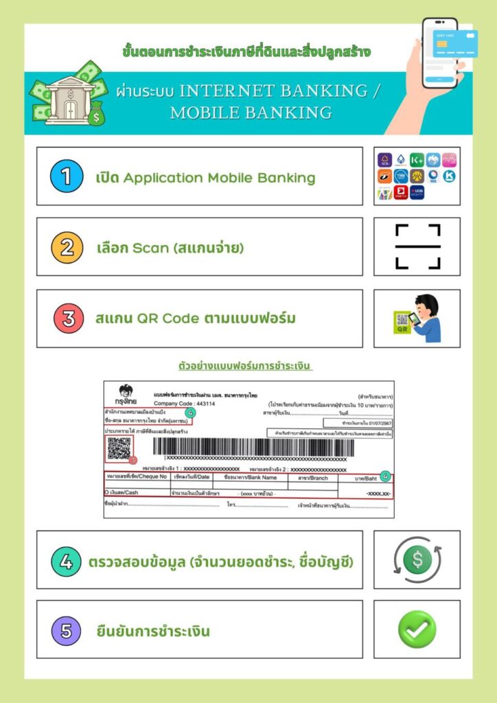 ขั้นตอนการชำระเงินภาษีที่ดินและสิ่งปลูกสร้าง เทศบาลเมืองบ้านบึง
