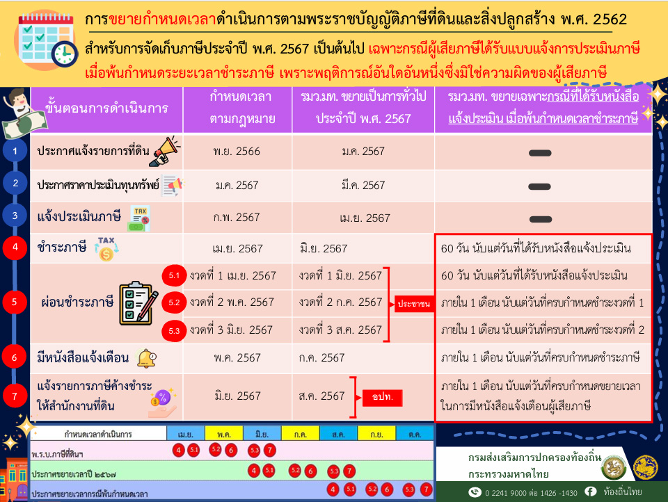 ขยายกำหนดเวลาดำเนินการตามพระราชบัญญัติภาษีที่ดินและสิ่งปลูกสร้าง พ.ศ.2562 เฉพาะกรณีที่ผู้เสียภาษีได้รับแบบแจ้งการประเมินภาษีเมื่อพ้นกำหนดระยะเวลาชำระภาษีเพราะพฤติการณ์อันใดอันหนึ่งซึ่งมิใช่ความผิดของผู้เสียภาษี ขยายกำหนดเวลาดำเนินการตามพระราชบัญญัติภาษีที่ดินและสิ่งปลูกสร้าง พ.ศ.2562ดาวน์โหลด