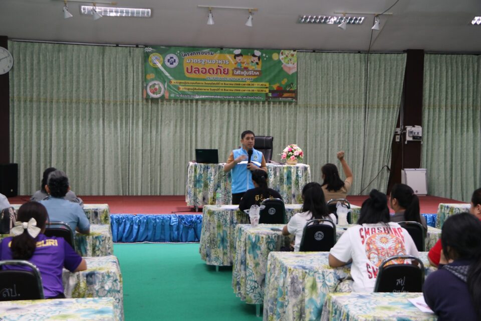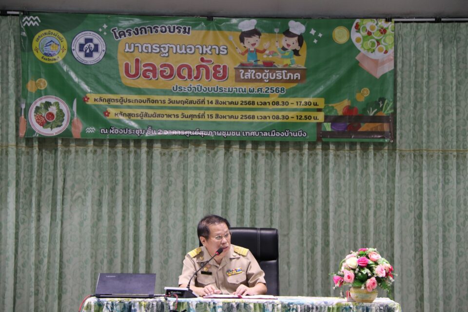 กองสาธารณสุขและสิ่งแวดล้อม จัดโครงการอบรมมาตรฐานอาหารปลอดภัย ใส่ใจผู้บริโภค ประจำปีงบประมาณ พ.ศ.2568 โดยนายพิชชา ตรีวรรณกุล รองนายกเทศมนตรีเมืองบ้านบึง เป็นประธานเปิดโครงการ พร้อมด้วยสมาชิกสภาเทศบาลฯ หัวหน้าส่วนราชการ เจ้าหน้าที่ ผู้ประกอบกิจการและผู้สัมผัสอาหารเข้าร่วมโครงการ และนางสาวทิพวรรณ กุศล รองปลัดเทศบาลเมืองบ้านบึง เป็นผู้กล่าววัตถุประสงค์ของการจัดโครงการฯ