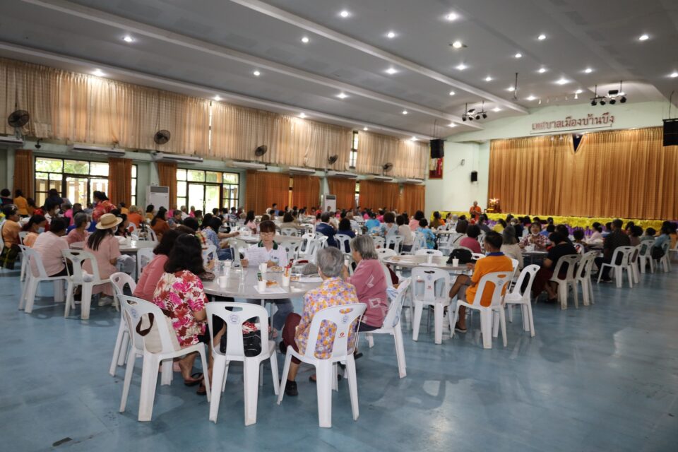 กองสวัสดิการสังคม เทศบาลเมืองบ้านบึง จัดโครงการวันมอบหัวใจให้ผู้สูงอายุ ครั้งที่ 12 ประจำปีงบประมาณ พ.ศ.2568 ณ ศูนย์ฝึกอาชีพชุมชน เทศบาลเมืองบ้านบึง โดยมีนายสุรสิตย์ กังวลกิจ นายกเทศมนตรีเมืองบ้านบึง ได้กล่าวพบปะพูดคุยกับผู้สูงอายุ ประกอบด้วยกิจกรรมต่าง ๆ ดังนี้