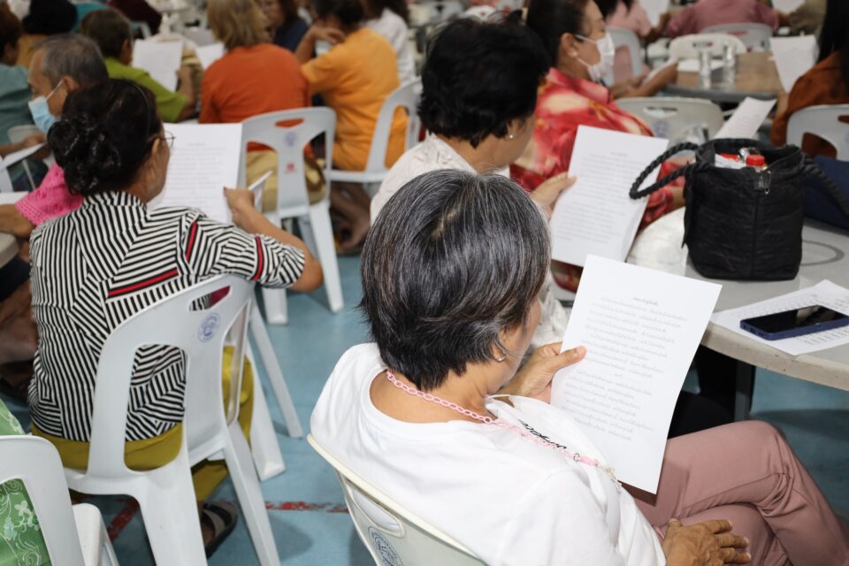 2. การให้ความรู้ในหัวข้อเรื่อง “ดนตรีบำบัดต่อการลดภาวะซึมเศร้าในผู้สูงอายุ” และกิจกรรมฝึกปฏิบัติ “ปลุกพลังใจ สร้างสุขล้นใจ ไปกับดนตรีพลังบวก”