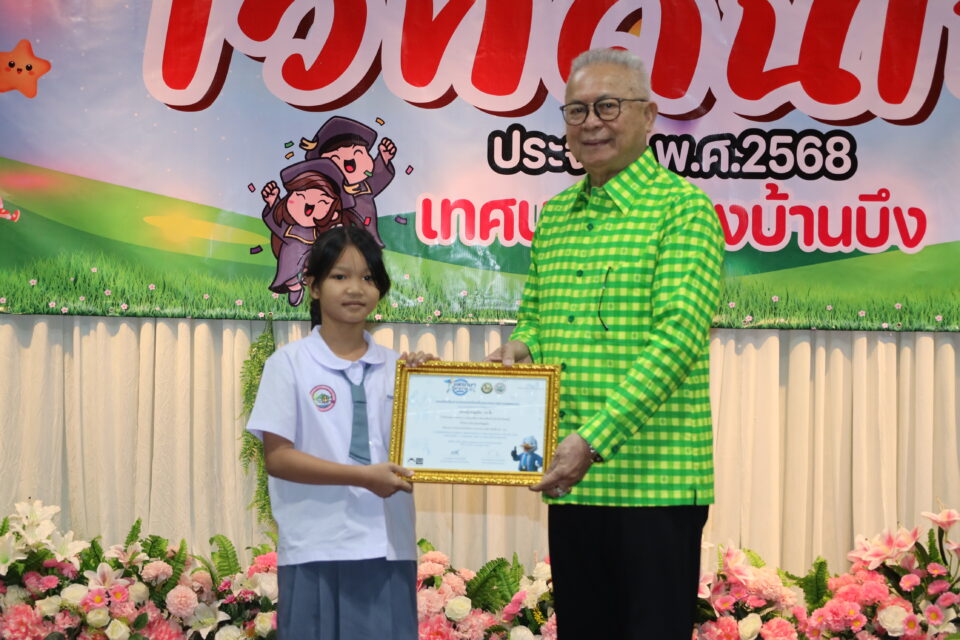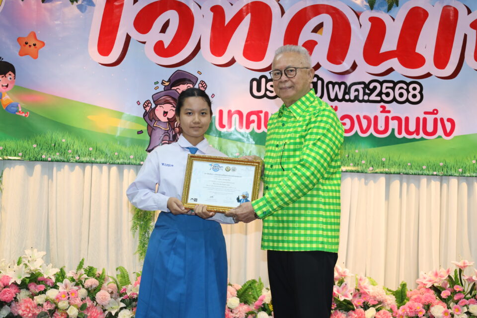 โดยนายสุรสิตย์ กังวลกิจ นายกเทศมนตรีเมืองบ้านบึง เป็นประธานในพิธีมอบเกียรติบัตรให้แก่นักเรียนที่ได้รับรางวัลจากการแข่งขันทักษะทางวิชาการระดับภาคตะวันออก ประจำปีพ.ศ.2568 (เวทีคนเก่ง) พร้อมด้วยคณะผู้บริหาร สมาชิกสภาเทศบาล หัวหน้าส่วนราชการ เข้าร่วมเป็นเกียรติในพิธีฯ