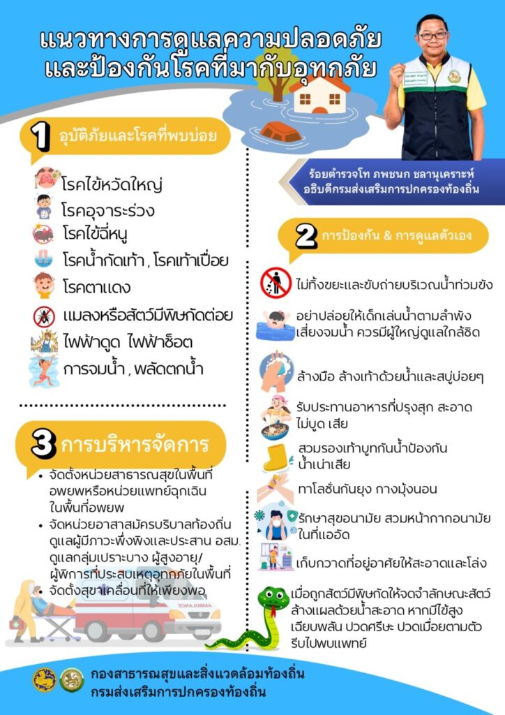 ประชาสัมพันธ์แนวทางการดูแลความปลอดภัยและป้องกันโรคที่มากับอุทกภัย