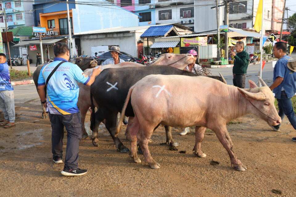 เมื่อวันที่ 12 ตุลาคม 2568 เวลา 08.00 น. เทศบาลเมืองบ้านบึง จัดงานประเพณีวิ่งควาย ประจำปี พ.ศ.2568 ณ บริเวณตลาดโต้รุ่ง เพื่ออนุรักษ์ส่งเสริมและรักษาขนบธรรมเนียมประเพณีและวัฒนธรรมอันดีงามของท้องถิ่นให้คงอยู่สืบไป โดยมีนายสุรสิตย์ กังวลกิจ นายกเทศมนตรีเมืองบ้านบึง เป็นประธานในพิธีครั้งนี้ พร้อมด้วย คณะผู้บริหาร สมาชิกสภา หัวหน้าส่วนราชการ เจ้าหน้าที่เทศบาลเมืองบ้านบึง และประชาชนเข้าร่วมกิจกรรมเป็นจำนวนมาก ซึ่งภายในงานประกอบด้วยกิจกรรมการประกวดควายประเภทต่าง ๆ การแข่งขันวิ่งควายเร็ว การประกวดร้องเพลงไทยลูกทุ่ง การแข่งขันกินอาหารอร่อยบ้านบึง การแข่งขันกีฬาพื้นบ้าน การแข่งขันตะกร้อลอดบ่วง และการแสดงของนักร้องรับเชิญ ตั๊กแตน ชลดา