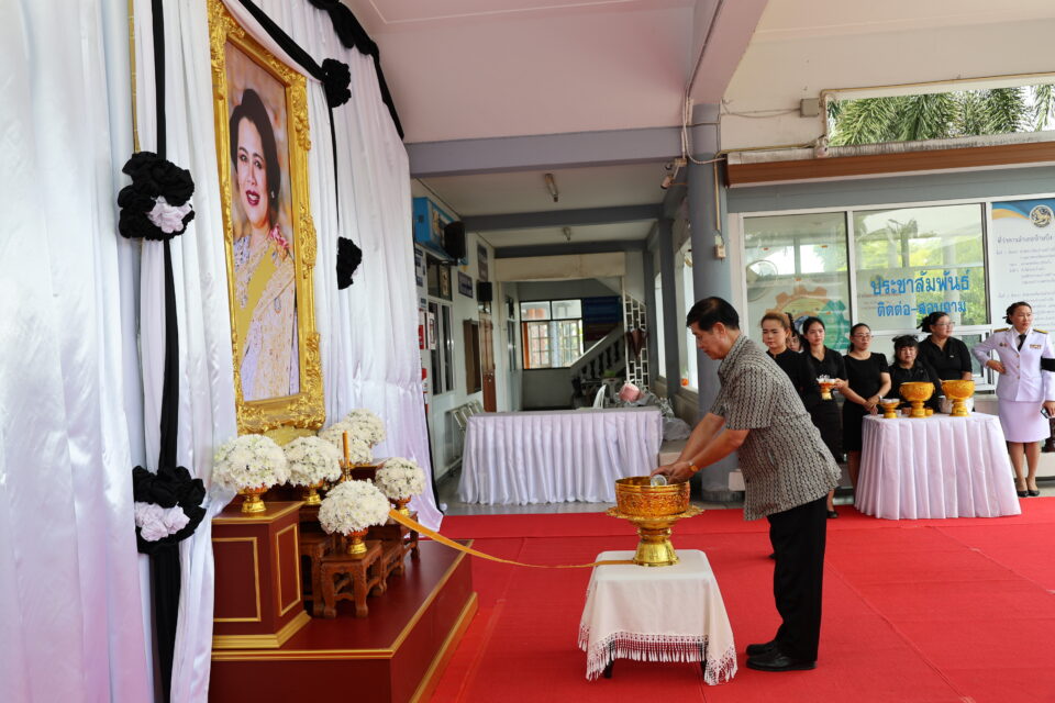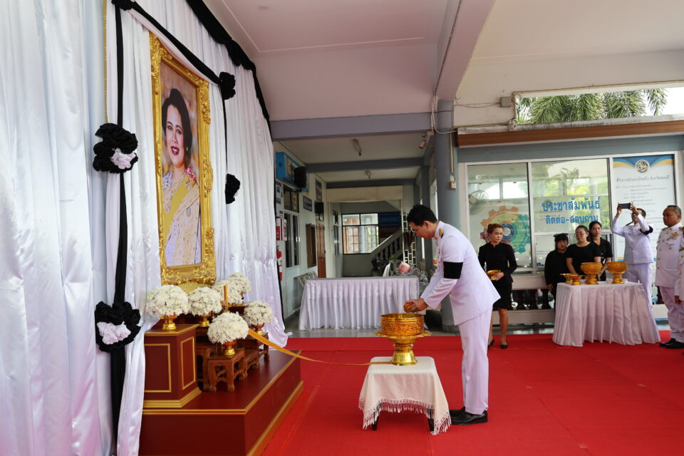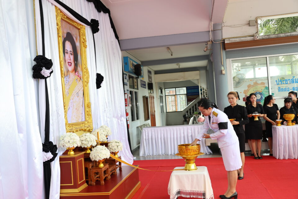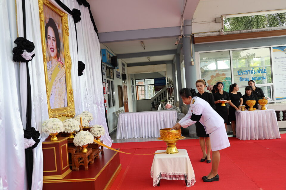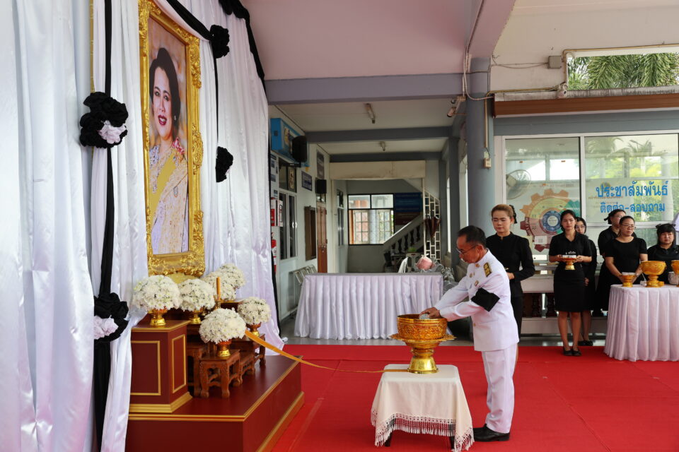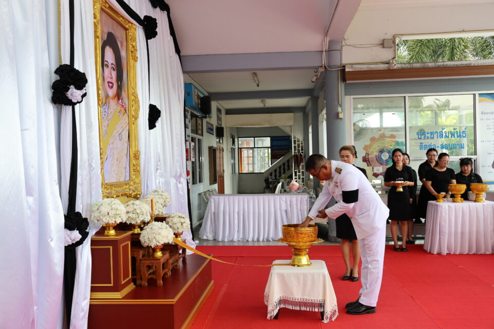 วันอาทิตย์ที่ 26 ตุลาคม พ.ศ. 2568 เวลา 09.30 น. ณ ที่ว่าการอำเภอบ้านบึง ว่าที่ร้อยตรีศราวุธ กรจิระเจริญ นายอำเภอบ้านบึง เป็นประธานในพิธี โดยมีนายพิชชา ตรีวรรณกุล รองนายกเทศมนตรีเมืองบ้านบึง พร้อมด้วยนายชาคริต นาคสถิตย์ เลขานุการนายกฯ หัวหน้าส่วนราชการ ผู้บริหารสถานศึกษา และพนักงานเทศบาลเทศบาลเมืองบ้านบึง เข้าร่วมพิธีถวายน้ำสรงพระบรมศพ เบื้องหน้าพระฉายาลักษณ์ สมเด็จพระนางเจ้าสิริกิติ์ พระบรมราชินีนาถ พระบรมราชชนนีพันปีหลวง เพื่อแสดงความอาลัยและสำนึกในพระมหากรุณาธิคุณอย่างหาที่สุดมิได้