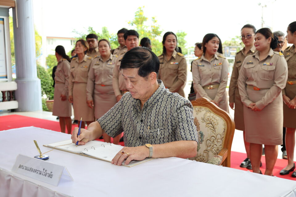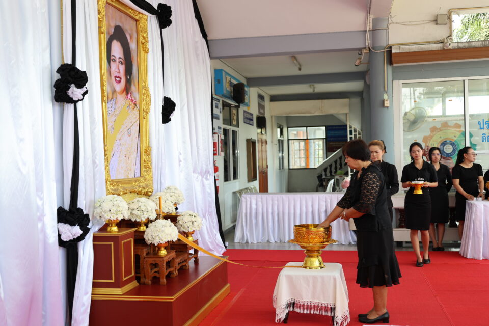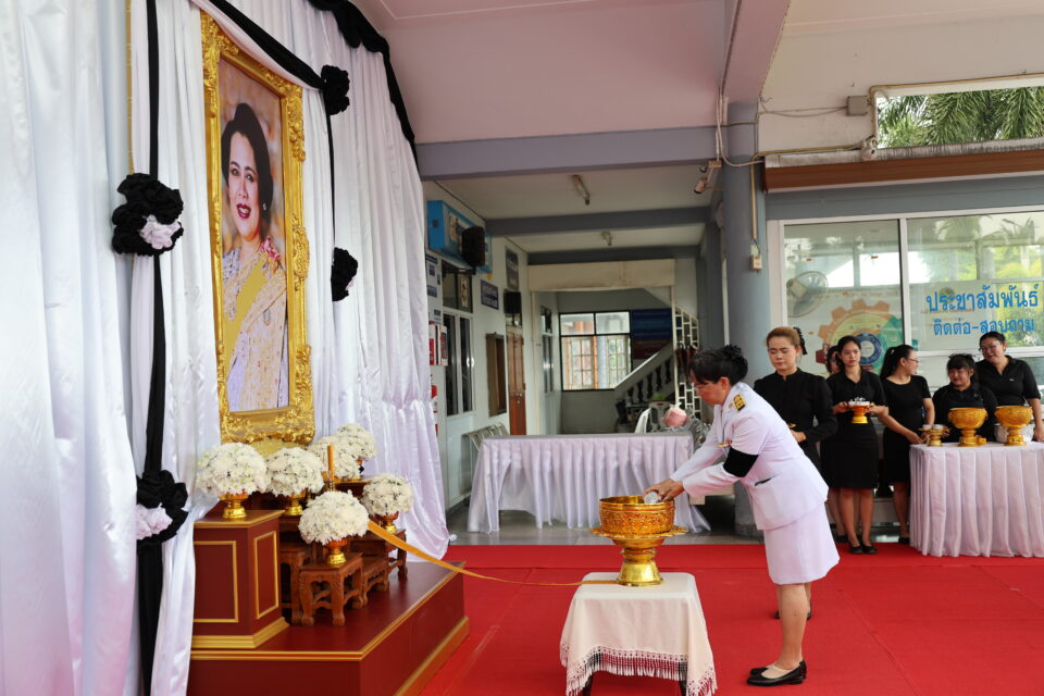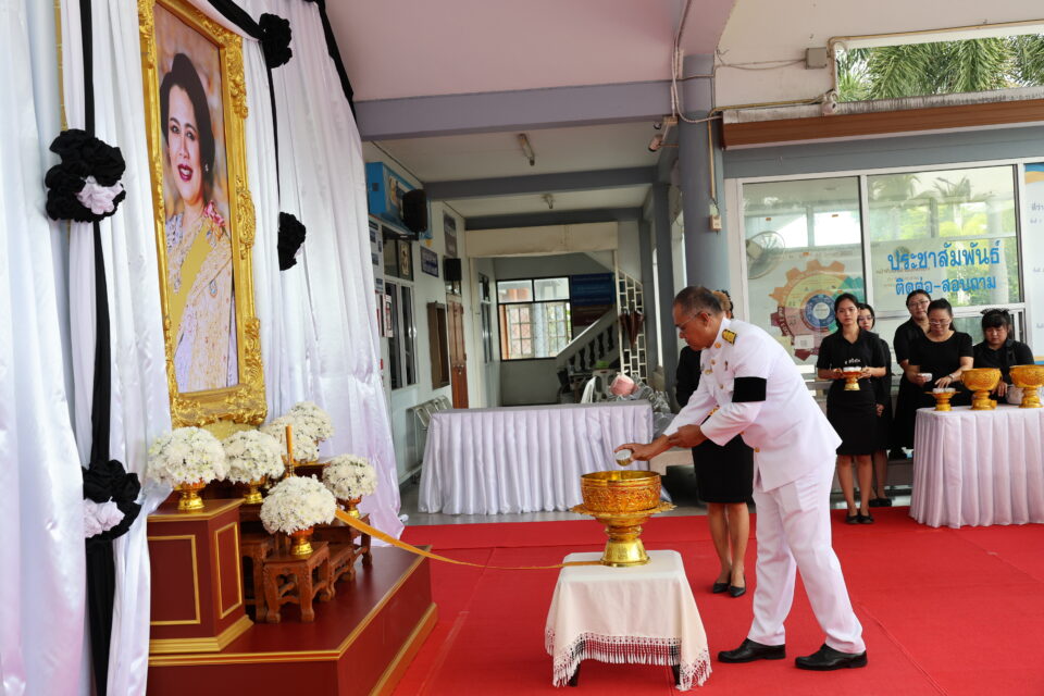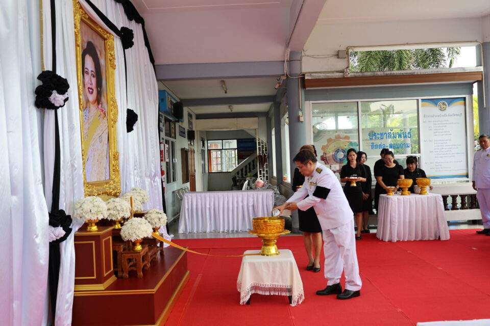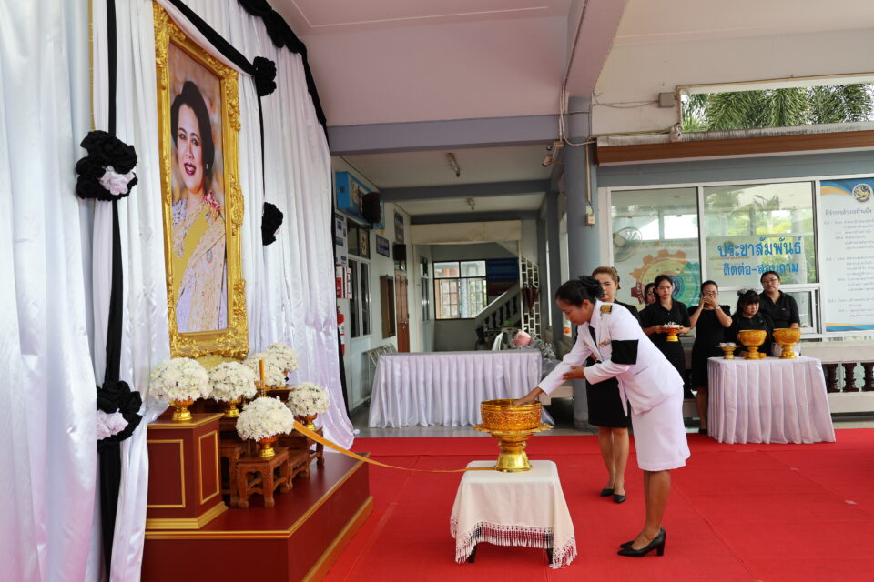 วันอาทิตย์ที่ 26 ตุลาคม พ.ศ. 2568 เวลา 09.30 น. ณ ที่ว่าการอำเภอบ้านบึง ว่าที่ร้อยตรีศราวุธ กรจิระเจริญ นายอำเภอบ้านบึง เป็นประธานในพิธี โดยมีนายพิชชา ตรีวรรณกุล รองนายกเทศมนตรีเมืองบ้านบึง พร้อมด้วยนายชาคริต นาคสถิตย์ เลขานุการนายกฯ หัวหน้าส่วนราชการ ผู้บริหารสถานศึกษา และพนักงานเทศบาลเทศบาลเมืองบ้านบึง เข้าร่วมพิธีถวายน้ำสรงพระบรมศพ เบื้องหน้าพระฉายาลักษณ์ สมเด็จพระนางเจ้าสิริกิติ์ พระบรมราชินีนาถ พระบรมราชชนนีพันปีหลวง เพื่อแสดงความอาลัยและสำนึกในพระมหากรุณาธิคุณอย่างหาที่สุดมิได้