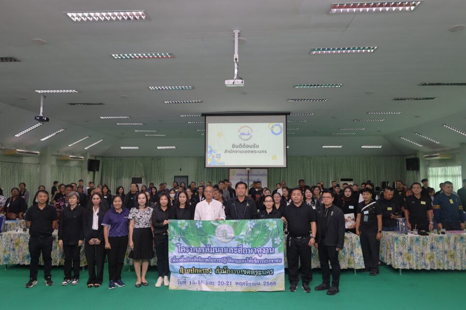 วันที่ 13 พฤศจิกายน 2568 เวลา 10.00 น. ณ ศูนย์สุขภาพชุมชน ชั้น 2 นายประสิทธิ์ โทนทอง ปลัดเทศบาลเมืองบ้านบึง พร้อมด้วย หัวหน้าส่วนราชการ และเจ้าหน้าที่เทศบาลเมืองบ้านบึงร่วมให้การต้อนรับคณะศึกษาดูงานจากสำนักงานเขตพระนครต้อนรับคณะศึกษาดูงานจากสำนักงานเขตพระนคร รุ่นที่ 1 ที่มาศึกษาดูงานและแลกเปลี่ยนเรียนรู้ในหัวข้อเรื่อง “การบริหารจัดการบ้านเมืองที่ดี ชมรมผู้สูงอายุและศูนย์ธาราบำบัดเพื่อสุขภาพ” เพื่อเพิ่มประสิทธิภาพในการปฏิบัติงานและให้บริการประชาชน