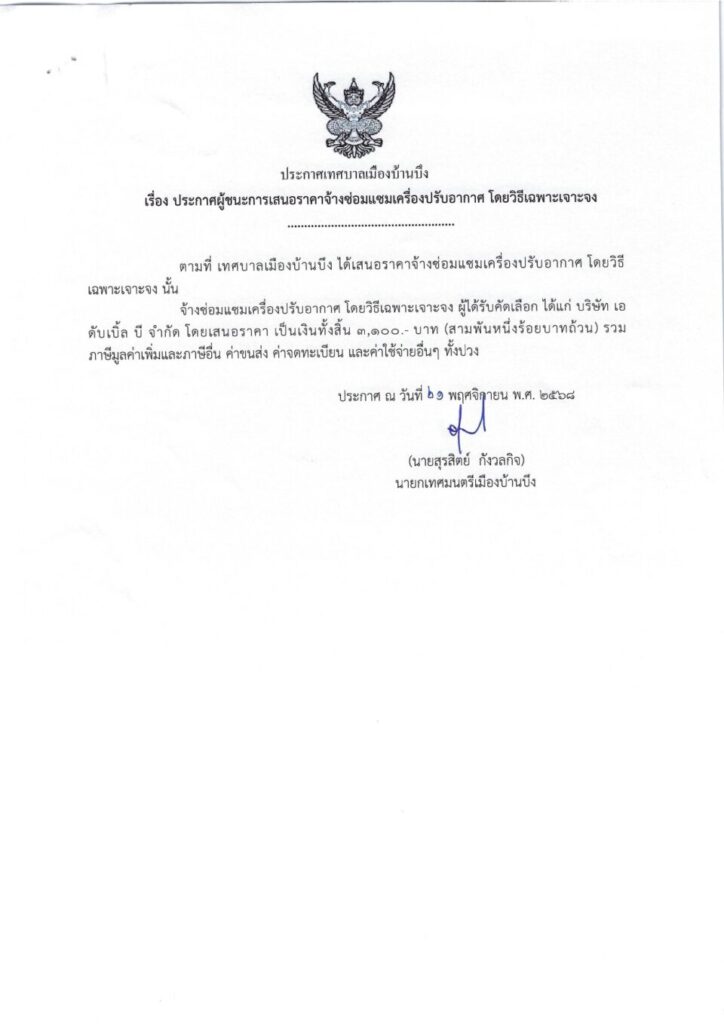 ประกาศเทศบาลเมืองบ้านบึง