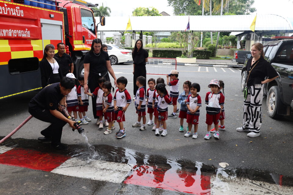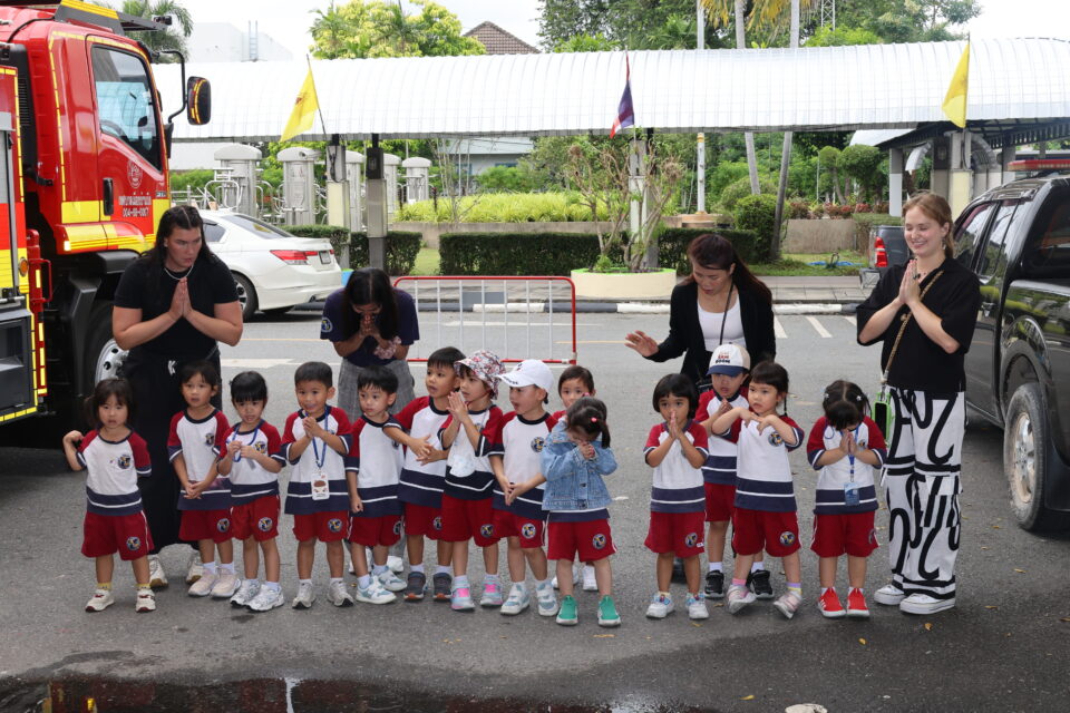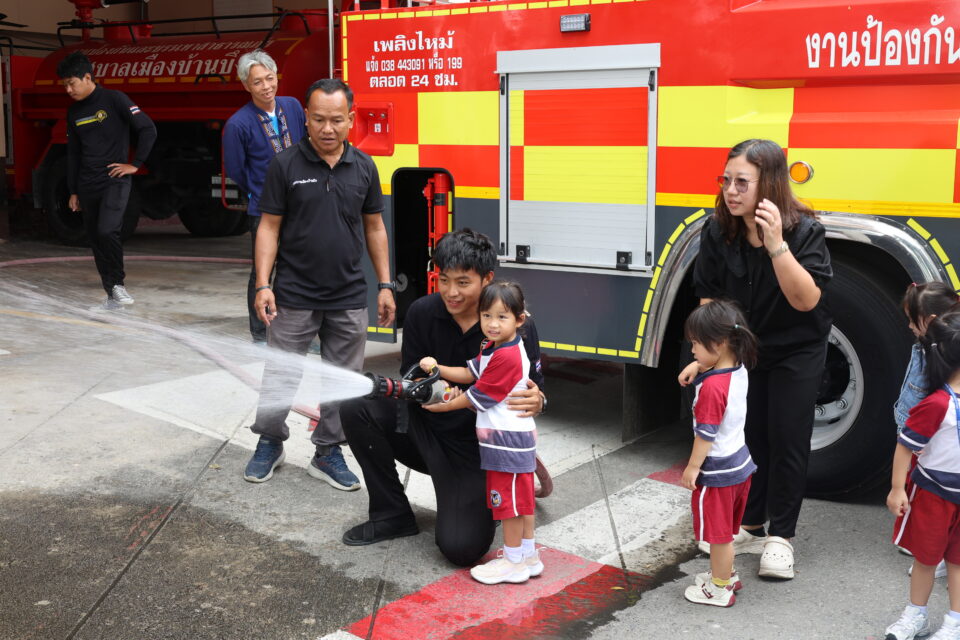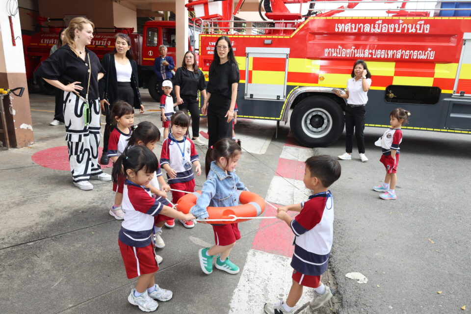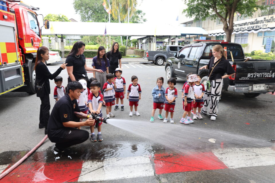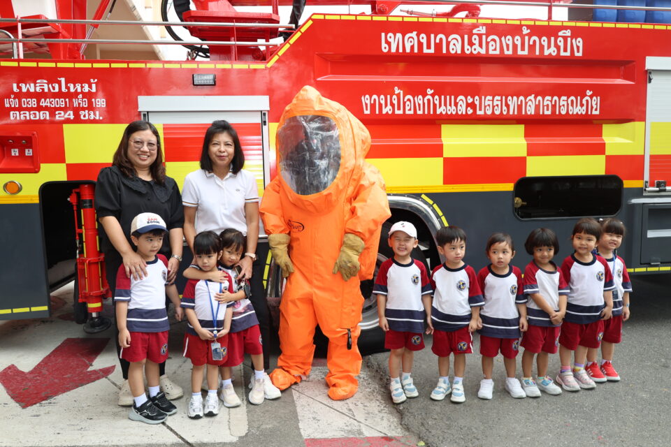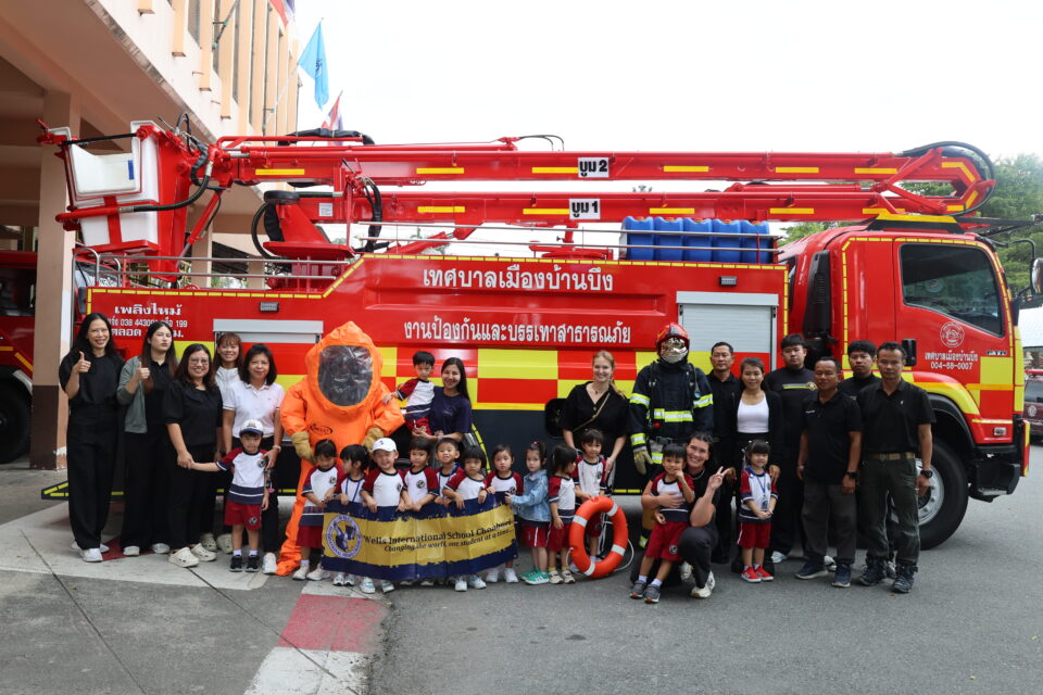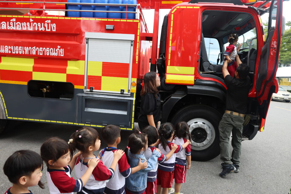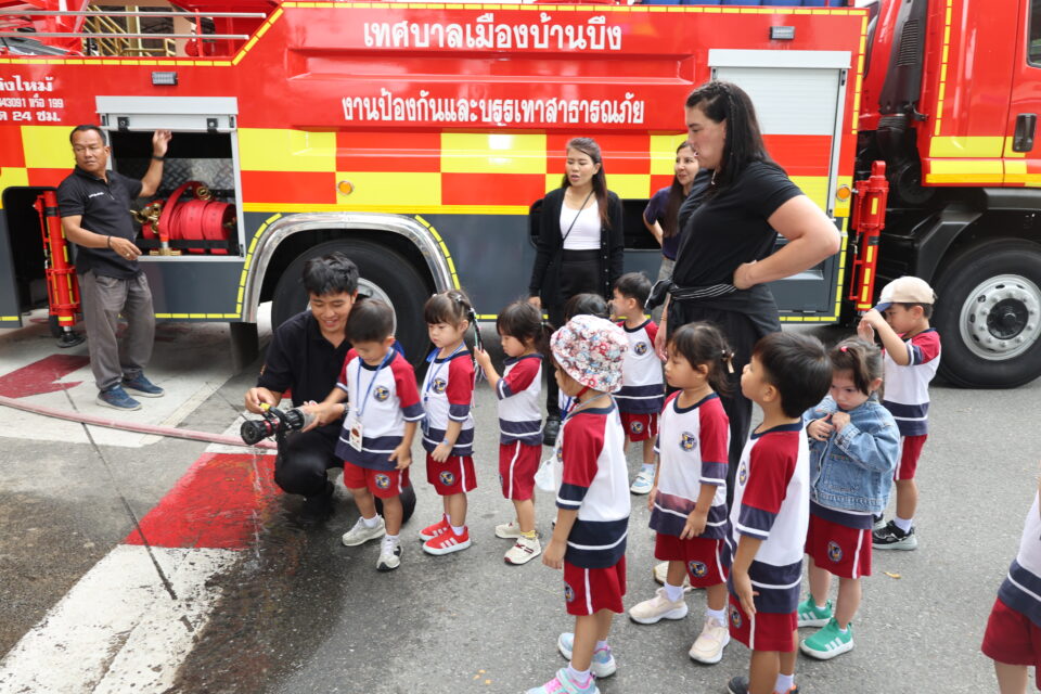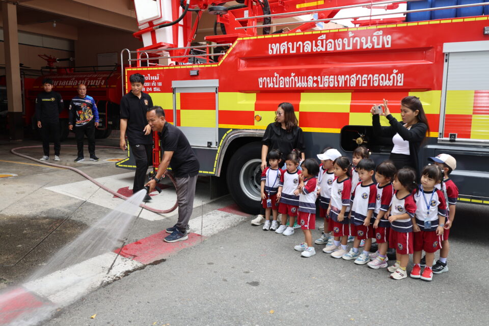 งานป้องกันและบรรเทาสาธารณภัย เทศบาลเมืองบ้านบึง ต้อนรับคณะครูและนักเรียนระดับชั้นอนุบาลปีที่ 1 (อายุระหว่าง 3-4 ปี) โรงเรียนนานาชาติเวลล์ส ชลบุรี ซึ่งจัดกิจกรรมทัศนศึกษาให้กับนักเรียน เพื่อให้นักเรียนได้เรียนรู้บทบาทหน้าที่ของเจ้าหน้าที่ดับเพลิงในชุมชน ตลอดจนเรียนรู้เกี่ยวกับความปลอดภัยจากอัคคีภัยผ่านกิจกรรมที่สนุกสนานและมีส่วนร่วม ซึ่งจะช่วยให้นักเรียนเกิดความไว้วางใจ ความคุ้นเคย และทัศนคติที่ดีต่อเจ้าหน้าที่ดับเพลิงและหน่วยงานฉุกเฉิน