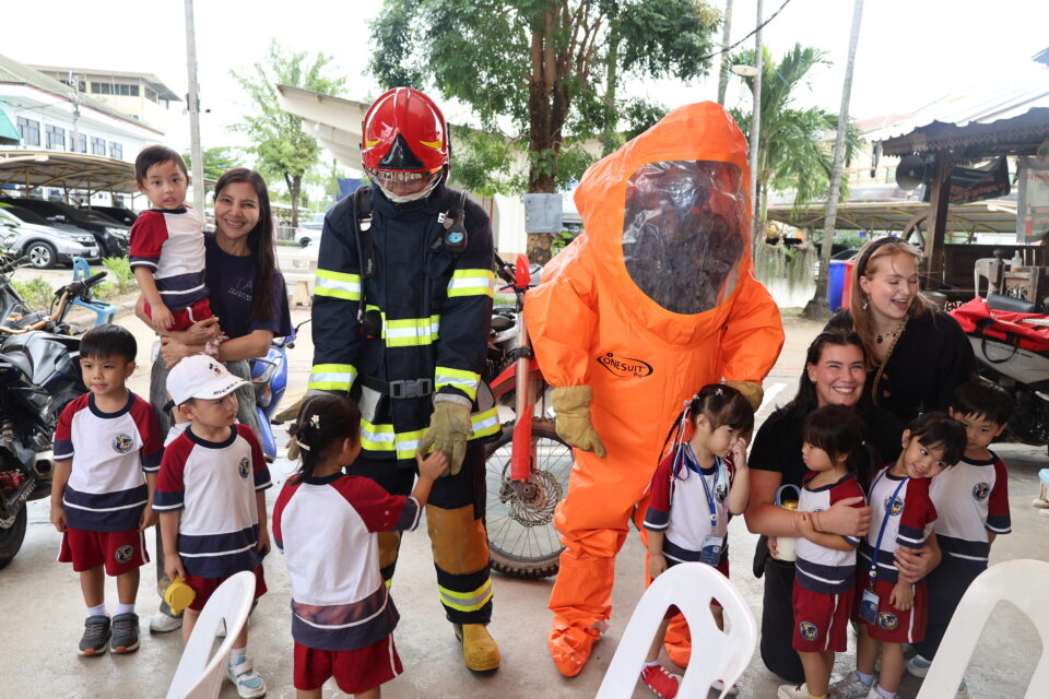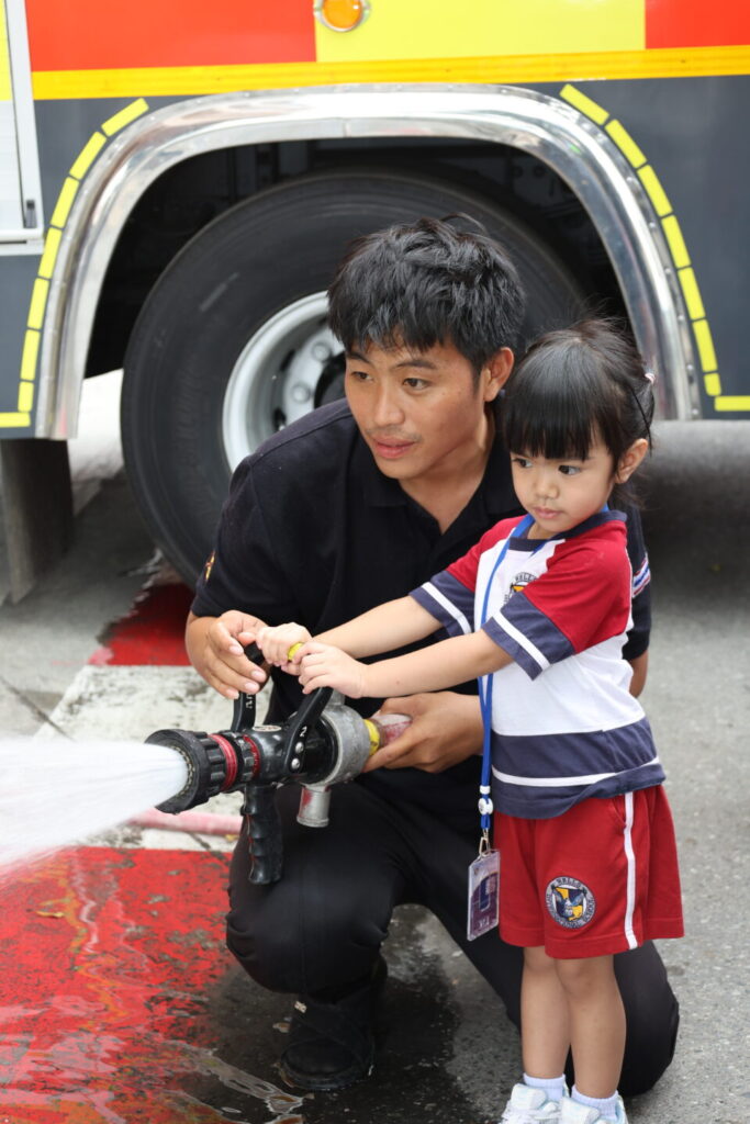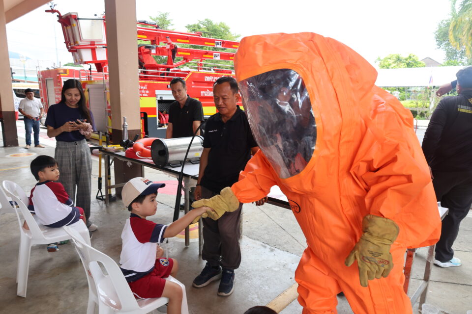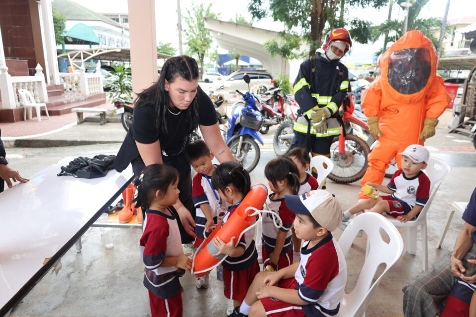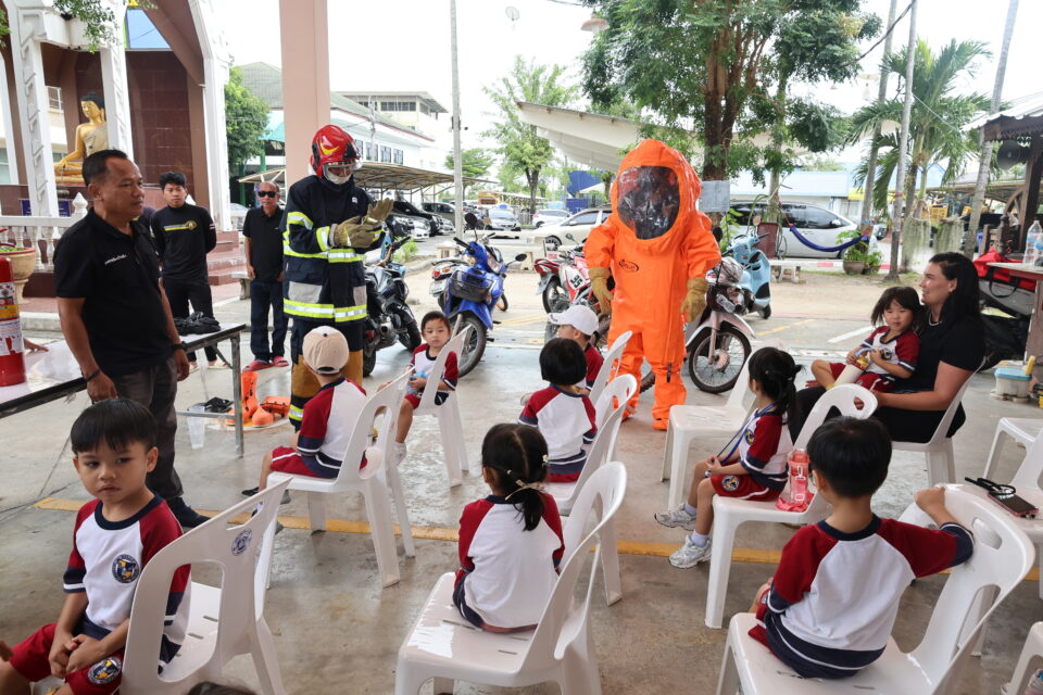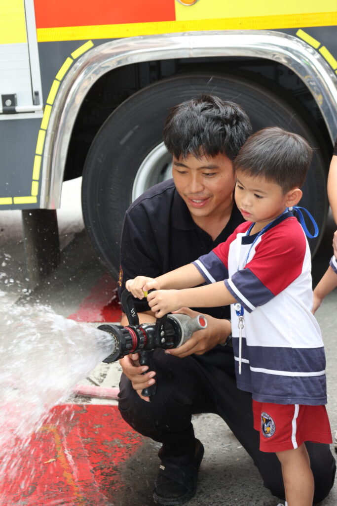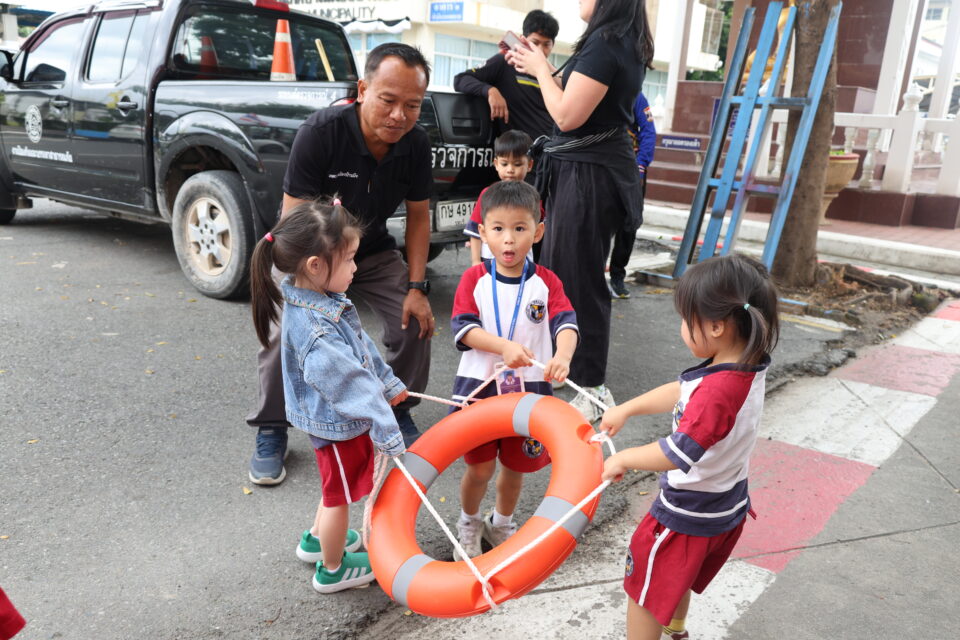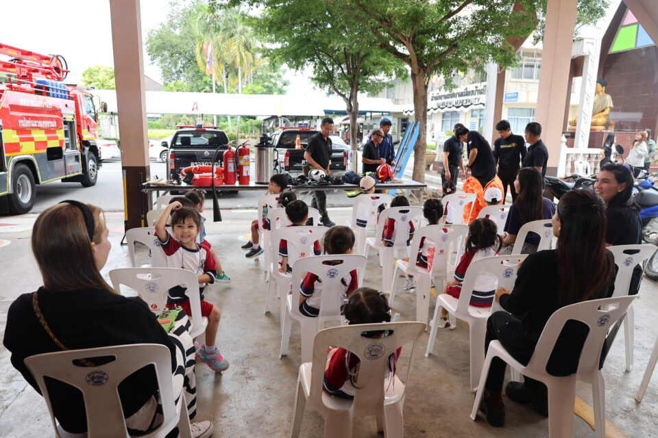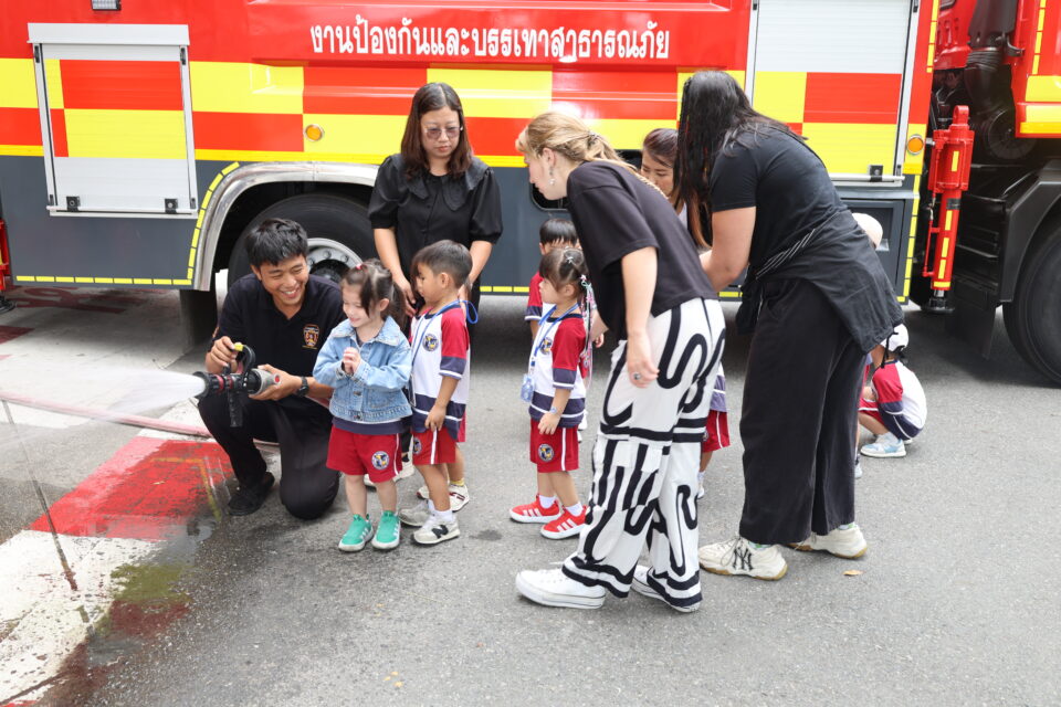 งานป้องกันและบรรเทาสาธารณภัย เทศบาลเมืองบ้านบึง ต้อนรับคณะครูและนักเรียนระดับชั้นอนุบาลปีที่ 1 (อายุระหว่าง 3-4 ปี) โรงเรียนนานาชาติเวลล์ส ชลบุรี ซึ่งจัดกิจกรรมทัศนศึกษาให้กับนักเรียน เพื่อให้นักเรียนได้เรียนรู้บทบาทหน้าที่ของเจ้าหน้าที่ดับเพลิงในชุมชน ตลอดจนเรียนรู้เกี่ยวกับความปลอดภัยจากอัคคีภัยผ่านกิจกรรมที่สนุกสนานและมีส่วนร่วม ซึ่งจะช่วยให้นักเรียนเกิดความไว้วางใจ ความคุ้นเคย และทัศนคติที่ดีต่อเจ้าหน้าที่ดับเพลิงและหน่วยงานฉุกเฉิน