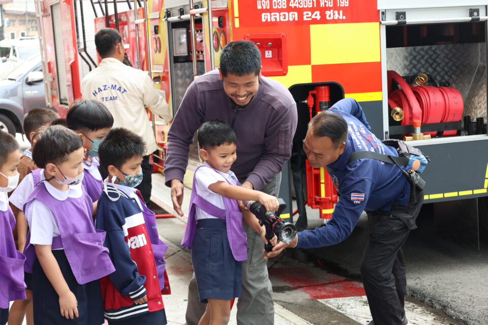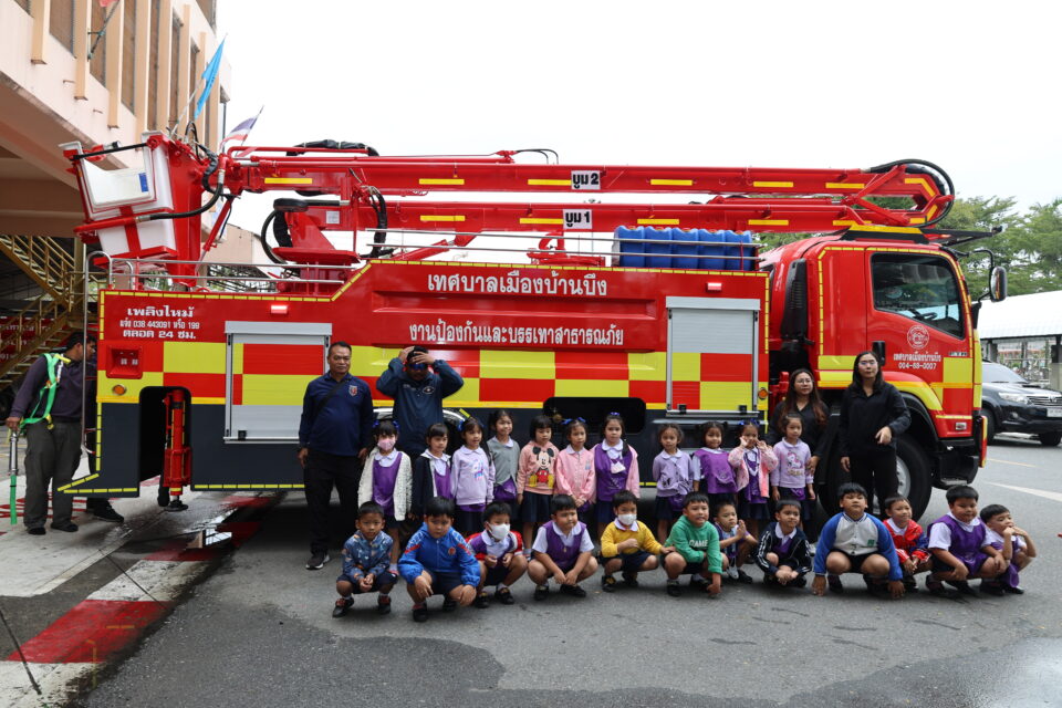 งานป้องกันและบรรเทาสาธารณภัย เทศบาลเมืองบ้านบึง ต้อนรับคณะครูและนักเรียนโรงเรียนอนุบาลบ้านบึง (อำนาจคณูปถัมภ์) ซึ่งจัดกิจกรรมเสริมประสบการณ์ สำหรับนักเรียนชั้นปฐมวัย อนุบาลปีที่ 1-3 โดยนำนักเรียนเข้าเยี่ยมชมสถานีดับเพลิงบ้านบึง เพื่อส่งเสริมการเรียนรู้ของนักเรียน