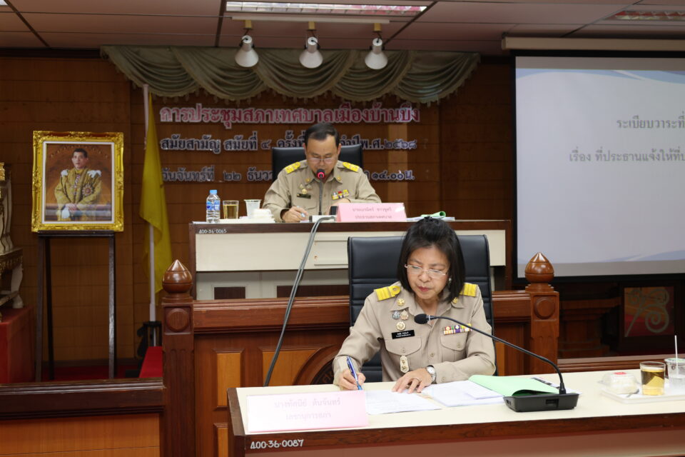 วันที่ 22 ธันวาคม 2568 เวลา 14.00 น. ณ ห้องประชุมสภาเทศบาลเมืองบ้านบึง นายเนรมิตร์ ขาวชูศรี ประธานสภาเทศบาลเมืองบ้านบึง พร้อมด้วยนายสุรสิตย์ กังวลกิจ นายกเทศมนตรีเมืองบ้านบึง คณะผู้บริหาร สมาชิกสภา ปลัดเทศบาล รองปลัดเทศบาล และหัวหน้าส่วนราชการ เข้าร่วมการประชุมสภาเทศบาลเมืองบ้านบึง สมัยสามัญ สมัยที่ 4 ครั้งที่ 2 ประจำปี 2568