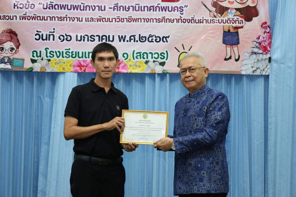วันที่ 16 มกราคม 2569 เวลา 08.00 น. ณ ห้องประชุม โรงเรียนเทศบาล 1 (สถาวร) กองการศึกษา เทศบาลเมืองบ้านบึง จัดโครงการจัดงานวันครู ประจำปี พ.ศ. 2569 เพื่อส่งเสริมวิชาชีพครู อันเป็นกำลังสำคัญของการจัดการศึกษาท้องถิ่น โดยมีนายสุรสิตย์ กังวลกิจ นายกเทศมนตรีเมืองบ้านบึง เป็นประธานในพิธี