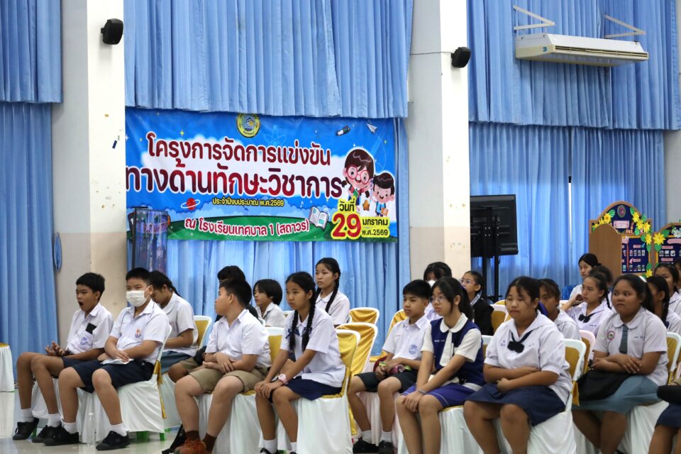 วันที่ 29 มกราคม 2569 เวลา 08.30 น. ณ โรงเรียนเทศบาล 1 (สถาวร) กองการศึกษา เทศบาลเมืองบ้านบึง จัดโครงการจัดการแข่งขันทางด้านทักษะวิชาการ ประจำปีงบประมาณ 2569 โดยมีนายสุรสิตย์ กังวลกิจ นายกเทศมนตรีเมืองบ้านบึง เป็นประธานเปิดโครงการฯ พร้อมด้วยคณะผู้บริหาร สมาชิกสภาเทศบาลฯ หัวหน้าส่วนราชการ คณะครูและนักเรียน และนายประสิทธิ์ โทนทอง ปลัดเทศบาลเมืองบ้านบึง เป็นผู้กล่าวรายงานวัตถุประสงค์ของการจัดโครงการ ซึ่งภายในงานมีการแข่งขันวาดภาพระบายสี และการแข่งขันทางด้านทักษะวิชาการประเภทรายสาระวิชาภาษาไทย คณิตศาสตร์ วิทยาศาสตร์ สังคมศึกษา ภาษาอังกฤษ และรวมสาระวิชาหลัก(5 สาระวิชา)