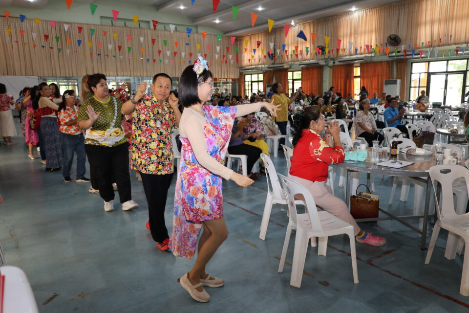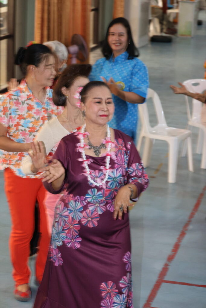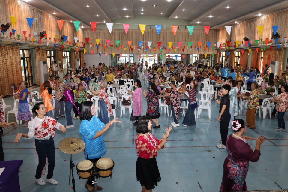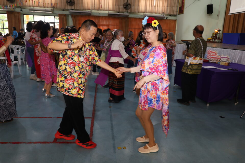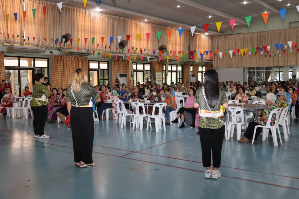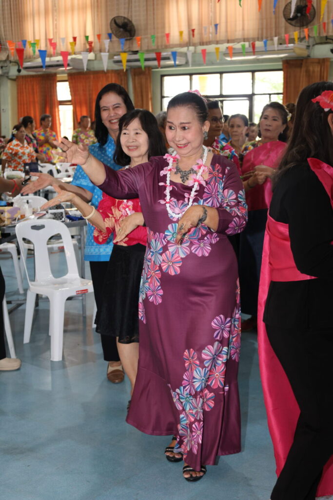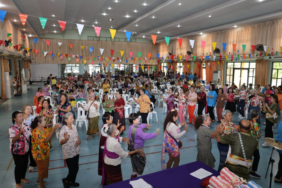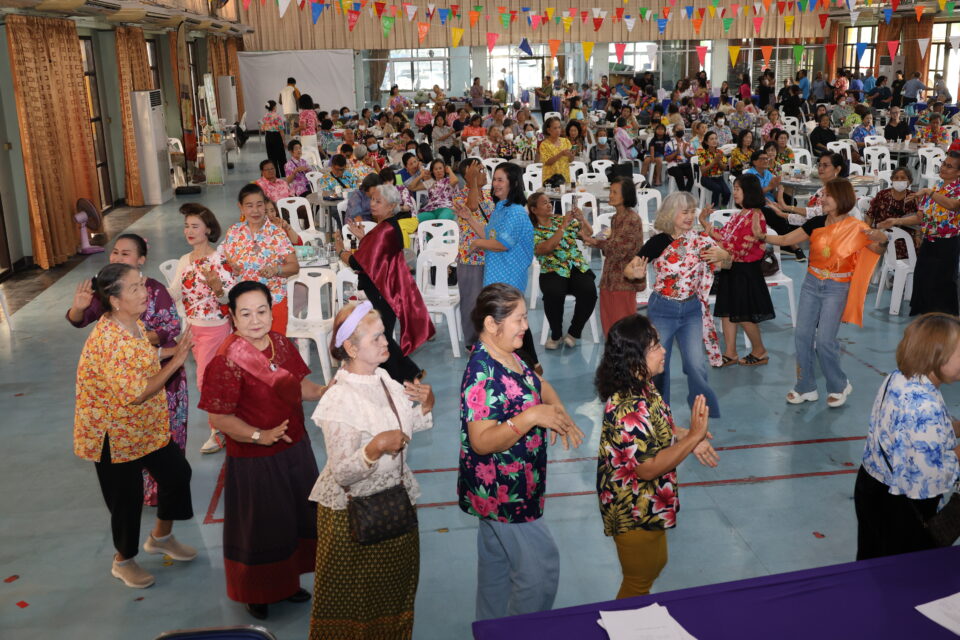 3.กิจกรรม “การสืบสานวัฒนธรรมไทยประเพณีสงกรานต์ ภูมิปัญญาท้องถิ่น การรำวงย้อนยุค เกมส์พัฒนาสมองด้วยภูมิปัญญาไทย” วิทยากรโดยนายไพโรจน์ แสนจันทร์ และคณะ