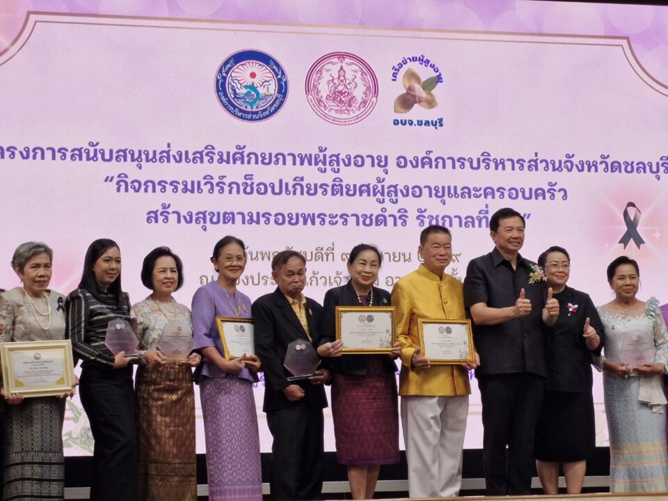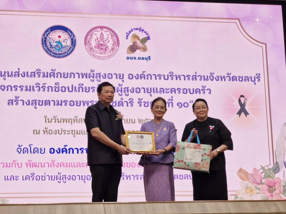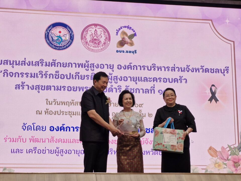 วันพฤหัสบดีที่ 9 เมษายน 2569 นายสุรสิตย์ กังวลกิจ นายกเทศมนตรีเมืองบ้านบึง มอบหมายให้ นางธิดารัตน์ จรุงจรรยาพงศ์ ผู้อำนวยการกองสวัสดิการสังคม อำนวยความสะดวกให้ผู้สูงอายุในการเข้ารับประกาศเกียรติคุณ และโล่เชิดชูเกียรติ ณ องค์การบริหารส่วนจังหวัดชลบุรี จำนวน 2 ประเภท ดังนี้